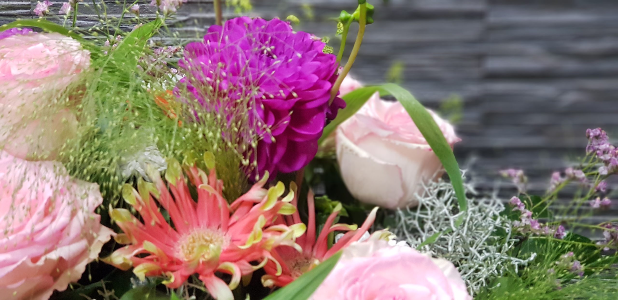 Joli panier de fleurs champêtres aux teintes multicolores.