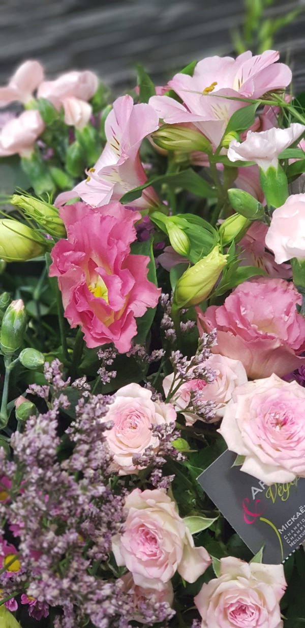 Prestigieux panier au style champêtre dans les tons rose et parme.